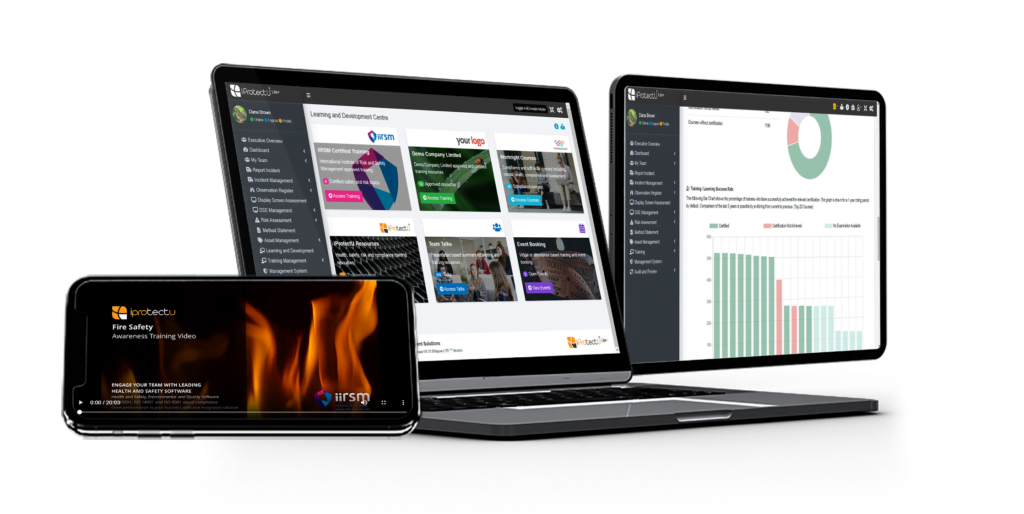 IIRSM-approved fire safety training built in, with certificate storage. |